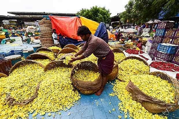 With temples are permitted to open on Friday, the market received 35 vehicles (5 tonnes of flower per truck). Currently, Jasmine sold for Rs 750 - Rs 900 per kg, royal jasmine Rs 600 - Rs 700 per kg, marigold Rs 60 - Rs 80 per kg, rose Rs 50 - Rs 70 per kg, Crossandra Rs 250 - Rs 300 per kg, and tuberose sold for Rs 60 - Rs 75 per kg.