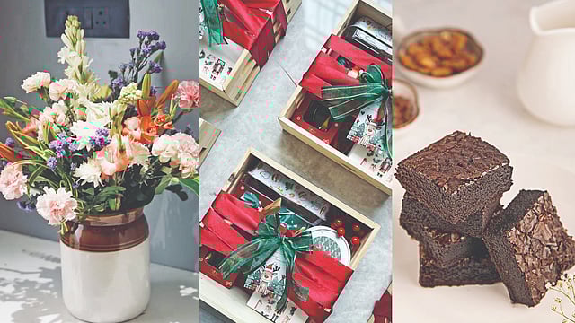 The festive rush extends to bakeries as well. Jasleen Aaron, founder of Madras Dough Knot and Amber Gifts and Events, says many customers reach out for Christmas hampers. “Our vanilla walnut cake is a big hit. Brownies and giant choco chunk cookies also sell quickly. These are usually what people choose for Christmas and New Year hampers, which we customise according to budget and preference.” She adds that Christmas butter cookies and butter walnut cake continue to be among the most popular festive orders.