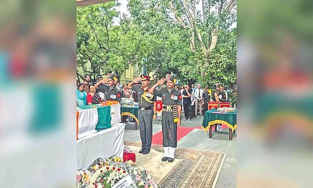 Senior Defence officials, including Vice Admiral Ravi Kumar Dhingra, Flag Officer Commanding, Tamil Nadu and Puducherry (FOTNA), Indian Navy; Lieutenant General Karanbir Singh Brar, General Officer Commanding, Indian army headquarters Dakshin Bharat Area (GOC DB area); Air Officer Commanding, Air Force Station, Tambaram; Southern Army Command representatives, veterans, Rashtriya Military College students and his relatives placed wreaths and paid floral tributes to the mortal remains of late General S Padmanabhan.