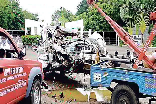 It looks like the container lorry driver lost control and his vehicle hit the car head-on killing three victims on the spot. Moorthy died at Chengalpet GH without responding to treatment at around 9 am. The other two injured, including a woman, are under treatment at Chengalpet GH.