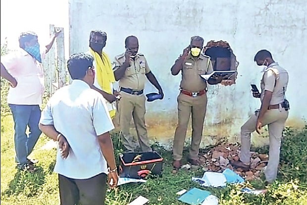 The incident happened at a government Tasmac outlet in Vedal village near Chennai-Bangalore National Highway. On Wednesday morning, when the staff came to open the shop, found stock notes, register and bill books scattered outside. On checking further, they found a hole drilled on the backside of the shop through which a person can enter inside.