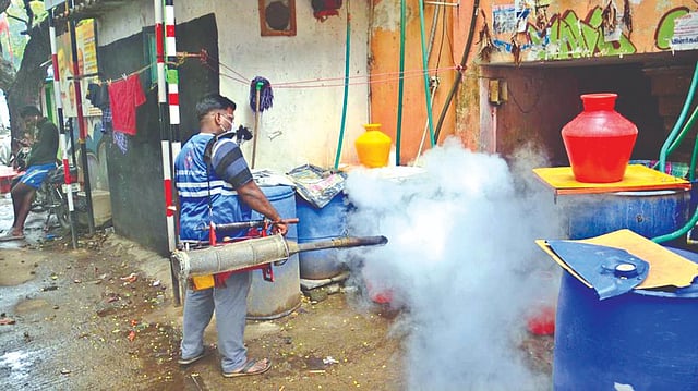 The Greater Chennai Corporation (GCC) advised the people to remove the stagnated water from the flower pot, lower shelf of refrigerator, and money plant at least once a week. The civic body also urged the public to ensure that there is no stagnation of rainwater in terrace.