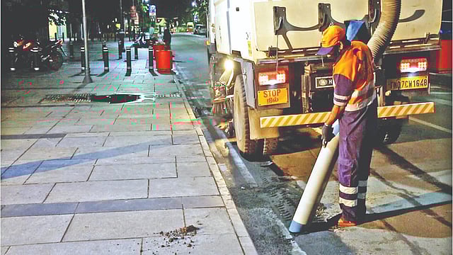 The officials will ensure the attendance of sanitation workers, usage of the assigned vehicles such as using the mechanical sweeper to clear the waste and sand on the roadside, and complete all the work before sunrise.