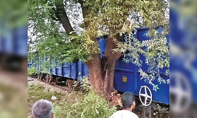 CHENNAI: A goods train derailed and stopped after hitting a tree near the Kancheepuram railway station on Tuesday. No casualties were reported.