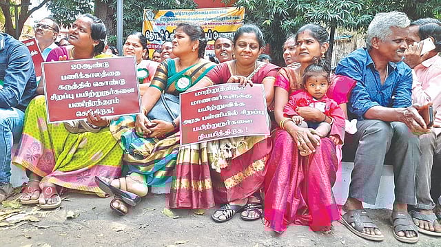 CHENNAI: Demanding job regularisation, over 700 special educators catering to students with disabilities in government and government-aided schools of Tamil Nadu, staged an indefinite protest at DPI campus here on Monday.