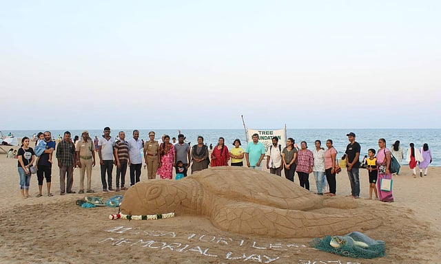 Organised by TREE Foundation, members of the Sea Turtle Protection Force (STPF), environmentalists, and volunteers, and government officials took part in the memorial event in Neelankarai Beach.