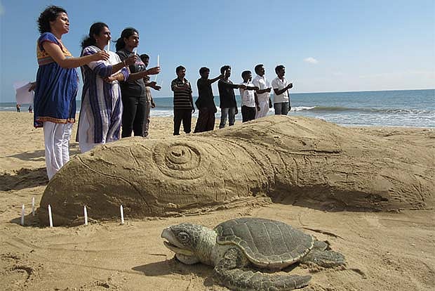 Sand models of sea turtles were created by the members of Sea Turtle Protection Force in Kancheepuram, Nellore, Krishan, Vizianagaram, Srikakulam coasts in Andhra Pradesh and Berhampur Coast in Odisha.