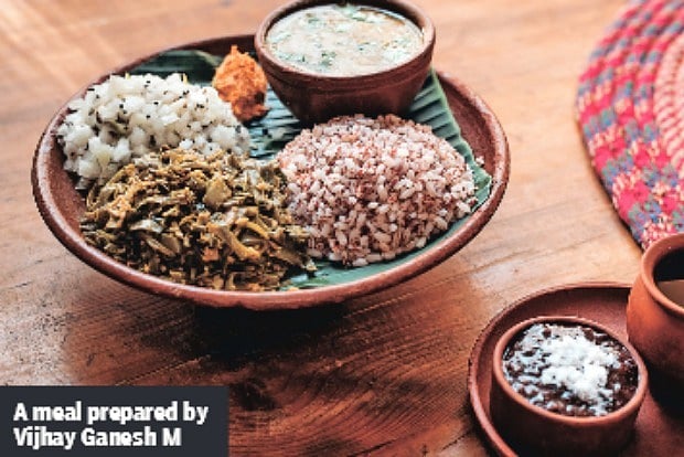 Vijhay is also part of a rice research group called Shalikuta. One has to build his/her knowledge about cooking time for different rice, veggies, dals and pulses. “The boiling time differs in rice jeeraga samba will take only 7 minutes to cook, while kattuyanam takes 20 minutes. Another important element in a meal is food for our microbes have a probiotic or fermented element with every lunch to fulfill that.