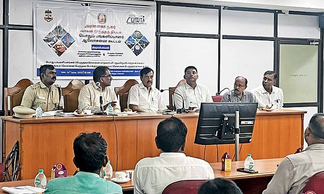 MK Mohan, MLA (Anna Nagar constituency), KJ Praveen Kumar, Jeyakumar I (IRTS); CK Ravi, member secretary, CUMTA; Adiyaman assistant commissioner (Traffic), and Councillor J Pushpalatha, Ward 102, and executive engineer of Zone 8, special projects department (GCC), officers of Zone 8, and several officials from CUMTA participated in the meeting.