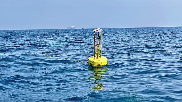 Sindhuja-I (which means generated from the ocean) has a floating buoy, a spar, and an electrical module. The buoy moves up and down along with the waves. In the present design, the balloon-like ‘buoy’ has a central hole that allows a long rod called a spar to pass through. The spar can be fixed to the seabed, and the relative motion produced with the buoy moving up and down will help generate power.