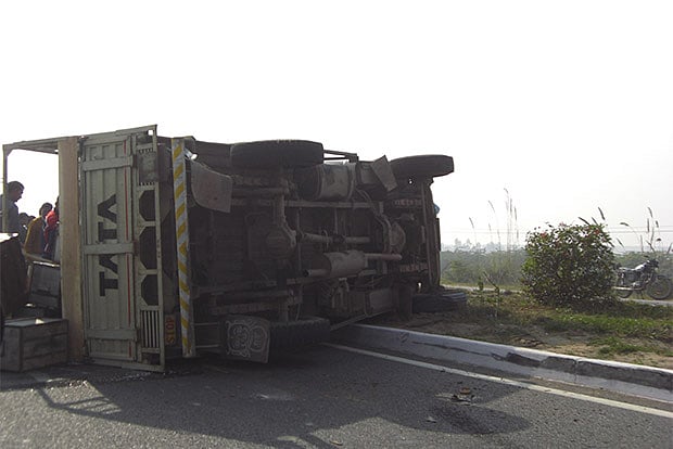 Police said Nagercoil-based advocate Rajaram (32) was returning to his home along with wife Rekha (27), son R Nikil Raj and relatives in a car after attending a function at Tiruppur, when the mishap occurred.