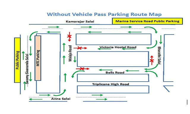 For Victoria Hostel Road, entry will be only via Bharathi Salai. No Entry from Wallajah Road. Bells road will be operated as One Way.