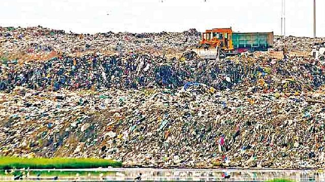 The dump yard is spread over an area of 343 acres, of which 252 acres have been used to dump waste for the past 40 years.