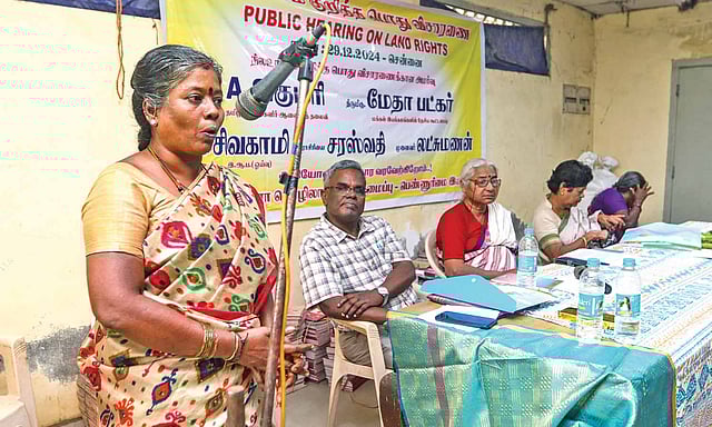 CHENNAI: Representatives from the fishermen, Irula, and Puthirai Vannar communities, as well as slum dwellers from Chennai and other parts of the state, vented their ire against successive state governments for denying them land rights at a public hearing on land rights on Sunday. They expressed strong discontent before the five-member panel, headed by social activist Medha Patkar, over successive governments’ lack of political will and persistent red tape that denied them a dignified life.