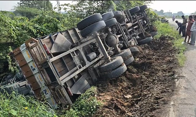 Around 10 pm, when the lorry carrying AAC blocks reached near Malaipattu, the driver lost control, and the vehicle veered off the road and toppled into roadside bushes.