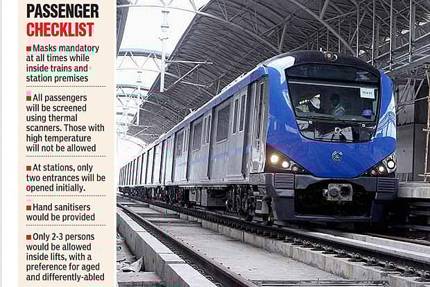The service would resume at 8 am on September 7, and would be enhanced in a graded manner. “Initially, train services will be operational from 8 am to 8 pm. The timings will be suitably changed based on the requirement in a gradual manner,” said a statement from CMRL.