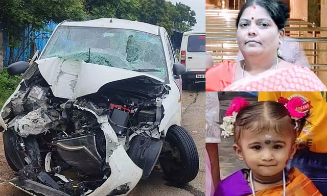 The father and another child are undergoing treatment. The deceased were identified as J Usharani (48), her daughter J Sai Monisha (4), and the rental car driver, Anees (30).