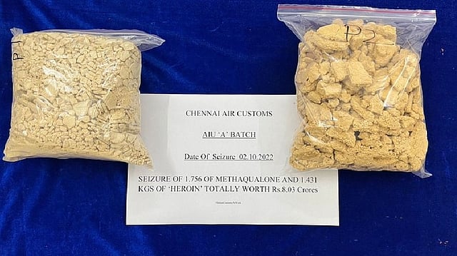 CHENNAI: Customs officials seized 1.756 kg of Methaqualone and 1.4 kg of heroin worth Rs 8 crore from a Ugandan national at the Chennai airport on Monday.