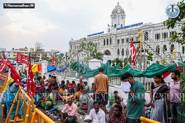 While cleanliness workers have been demanding permanent employment, officials forced them to join under a private contract for less salary. One of the protesters and the state secretary of Uzhaippor Urimai Iyakkam (UUI), R Mohan said, “We’re protesting for the third consecutive day, and it will go on till we get the job assurance order letter from the civic body. There are many elderly people with diabetes and high BP who are part of the protest.”