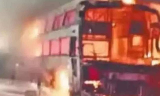 However, as fire had spread into the entire bus, it got completely destroyed.