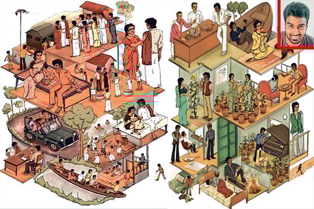 When I came to know that Rajini sir completed 45 years in the film industry, I decided to do a tribute to him. That’s how I created two isometric illustrations of his films,” says Abishek. An isometric illustration is a style of drawing which uses a technique called isometric projection. With isometric projection, any 3D object can be depicted on a flat two-dimensional surface. Explaining the process behind it, he says, “This is an isometric view of the important scenes from the film. I don’t include all the scenes in the illustration, but only take plot-defining scenes that convey the idea of the movie. I will be having a rough idea of what all scenes need to be included in the illustration.