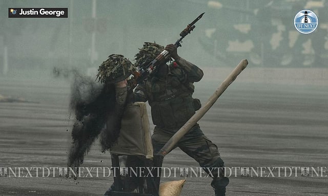 The show began with a display of might showcasing physical training skills, Army Martial Art Regime (AMAR), motorcycle display, equestrian display, the Indian martial art Kalaripayattu, and a bunker-bursting drill by Officer Cadets.