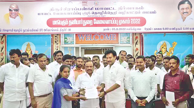 The Minister for School Education Anbil Mahesh Poyyamozhi and Minister for Labour welfare and Skill Ddevelopment CV Ganesan inaugurated the job mela in which as many as 230 private firms including TVS, Reliance Retails, Vijay milk, ABT Maruthi, Annamalai Auto and a few overseas employment service centres took part.
