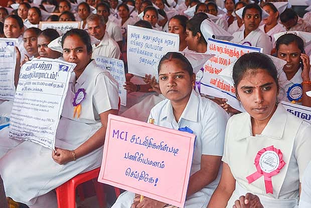 “The nurses are overworked and are paid a paltry Rs 7,700. Their services should have been regularised after three years,” he said. Rama completed a postgraduate in nursing and was confident of getting a job in a private hospital with a decent salary.