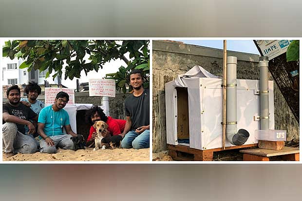 Sathishwaran, who runs a fitness centre in Royapettah, and his friends were passing by the beach one morning when they noticed that many dogs and puppies were getting drenched in the rain, because of which the idea to create a doghouse to provide shelter for them struck.