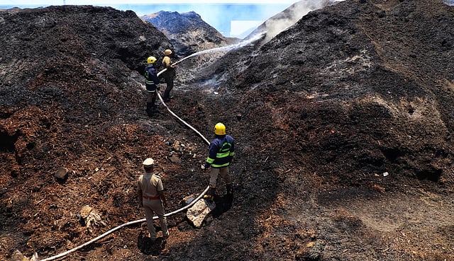 A day after fire broke out at Chennai's largest dump yard at Perungudi, Chennai Mayor R Priya along with Municipal Administration, Urban and Water Supply Minister KN Nehru and Greater Chennai Corporation Commissioner Gagandeep Singh Bedi inspected the situation. The heavy fumes of the fire spread almost 6-kilometer radius thus engulfing nearby areas leading to breathing difficulties and poor visibility. Soon after the fire, rescue engines and water lorries rushed to the spot to douse the fire. Officials confirmed the presence of Methane in the landfill and added that severe heat caused the fire.