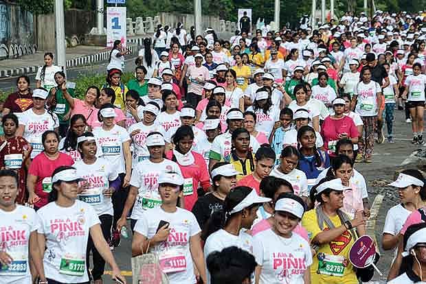 The three-day Pinkathon run, which ended on Sunday, saw the participation of over 8000 women from the city and also other places. Women clad in sarees, salwar kameez, hijabs or whatever attire they deemed fit and kept them comfortable, participated in the marathon which included distances between three and 21 kilometres. “While the motive of such marathons is to make the participants active and stay fit as well as get our mind to push our bodies beyond the comfort zone, the awareness it serves to create is also a factor to be considered,” said Anita J, an athlete.