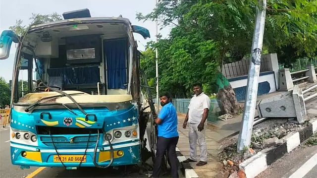 The accident took place at 6:30 am while the bus was taking 13 people from Velachery to Ennore.
