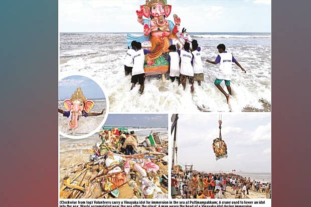 Braving the blazing sun, processions of the idols passed through the designated route and reached the sea at five immersion points identified by the police — Kasimedu, Foreshore Estate, Tiruvanmiyur and Neelankarai. Policemen were posted in sensitive areas like Triplicane, as idols of various hues and sizes, installed by several Hindu outfits, including the Hindu Munnani, were brought in processions and immersed in sea.