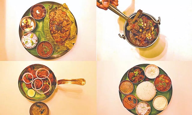Next, we tried chef Shri Bala’s signature chicken kizhi biryani. “I am a biryani lover and in this dish, I have incorporated flavours and techniques inspired by various kinds of biryani,” states the 49-year-old chef. The delicious biryani is accompanied by bread halwa, raitha and egg bhejo. We also tasted the Yercaud special dorai curry. The juicy mutton pieces, cooked together with drumstick and potato are a delectable savour. Their traditional desserts are top-notch. The Ashoka halwa and carrot halwa are subtle and toothsome. If you are in Indira Nagar in Adyar, then Yercaud Kitchen is a must-try.