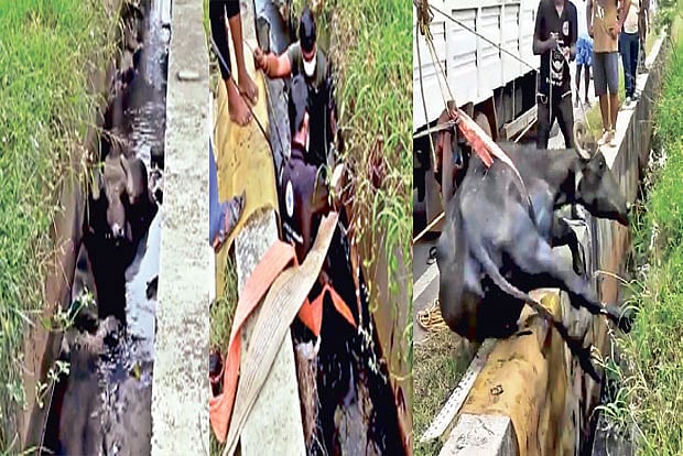 “It took us 12 minutes to rescue the animal. We first had to befriend it by feeding it some grass. Our team of four used a system of ropes and knots to get the animal out without causing it any more trauma,” said Williams, a technical rescuing expert.