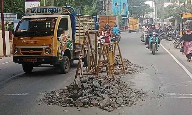 CHENNAI: Residents of B V Nagar in Pazhavanthangal raised concerns over the iron barricades that are erected in the middle of the road, causing severe traffic congestion and a threat to motorists. The barricades which were put up for repairing a manhole cover continue to inconvenience the public even after the works have been completed, added Daily Thanthi report.