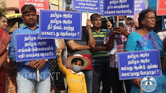 CHENNAI: Fed up with pollution caused by Perungudi dumping yard, residents living around the dumping ground staged a protest urging the Chennai Corporation to stop further dumping, on Saturday.