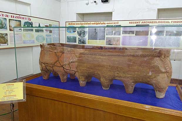 Vetriselvi, curator of Fort St George Museum, said that the sarcophagus was unearthed from Zamin Pallavaram in Kancheepuram district, in December 2017 and it dates back to 300 BC. The sarcophagus was not unearthed completely but was mended into a complete structure.