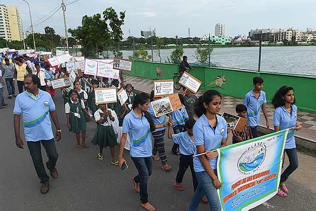 The students carried placards stressing on the importance of water and lake conservation. The rally was flagged off by Ravikumar, principal of St. Pius School and Mangiarkkarasi, headmistress of the Nagamani Adigal School. The PLANET members also decided to carry out periodical water quality monitoring at Perungudi lake, open wells and bore wells in the lake neighbourhood.