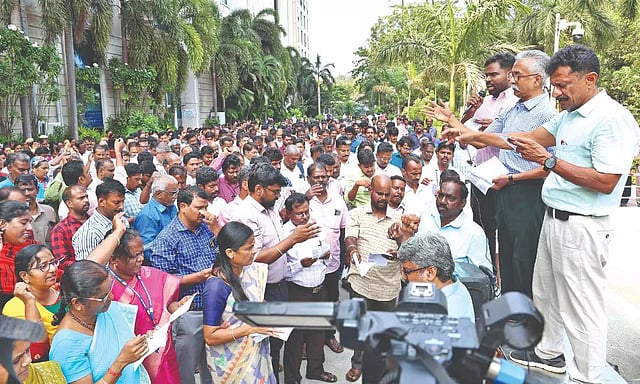 CHENNAI: Condemning the ruling DMK government for not fulfilling its election promises, the Tamil Nadu Secretariat Officers and Employees Association staged a demonstration on Friday.