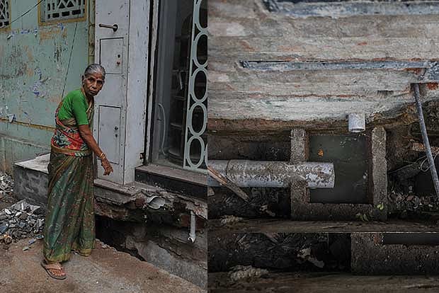 A few of the residents have reconstructed the pathway and entrances that had been damaged. Babyamma, a resident of the locality for several years now, has restricted her movement outside the house. “I can’t cross this ladder-like structure every time I need to step out of the house. I have to get the help of people each time I want to go out,” she said. A few doors away, N Rajasekar, a third generation entrepreneur whose office has been in the vicinity for several decades now pointed out, “They have been throwing the slush out of the drains each time and it is all in front of our homes. The mosquito menace is unbearable. We have just about managed to make our places accessible after the caving in a few months ago. But the prolonged work has impacted our lives very badly.”