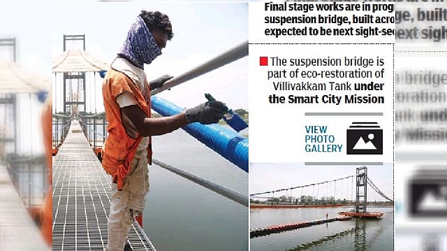 The suspension bridge is part of eco-restoration of Villivakkam Tank under the Smart City Mission