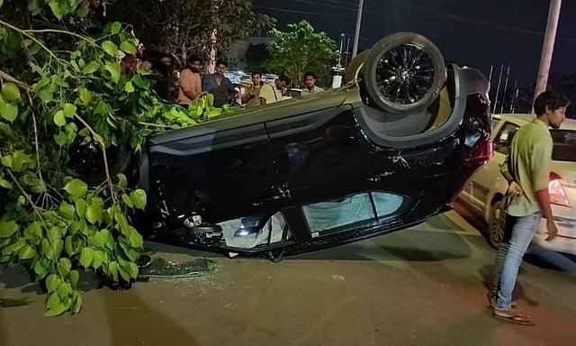 Residents rushed to the spot and rescued Varun from the overturned vehicle. He sustained minor injuries.