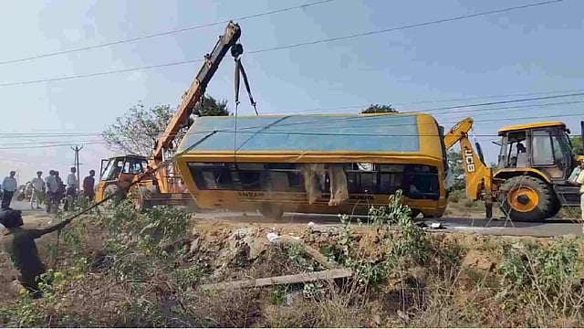 CHENNAI: More than ten school students were injured after the school bus turned turtle in Palanthandalam near Somangalam on Thursday.