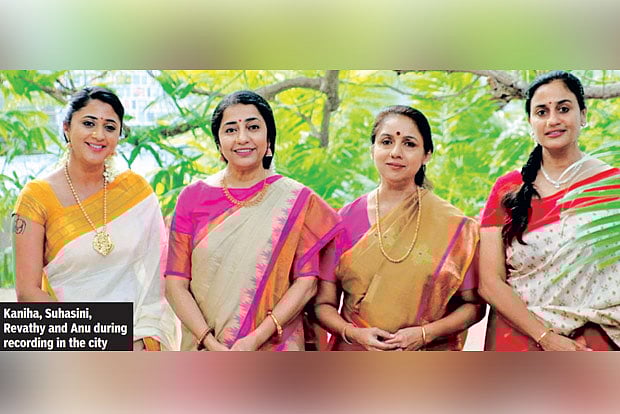 They got the rhythm of the original composition and Subhasri sent it to eight members. “Eight of us did the recording from our houses and send it back to Subhasri. A few days later, she got back to me saying that no two voices are matching and suggested that unless we all come together to the studio and record, it will not look good. But that was not possible because we all were in different parts and busy with our works. Then we decided to record with four people who are living in Chennai. So, I, Anu, Revathy and Kaniha got together and in 45 minutes we recorded our portions at the city studio. It wasn’t an easy process because earlier, I had divided the songs and assigned different portions to each member. But we four managed to sing the entire song. The lead singer Uma Padmanabhan, who was in Kumbakonam, recorded her portion and shared it. Nithya, Remya and Jayashree also recorded their portion. Somehow, it all fell in place and our music single Margazhi Thingal is ready now. Margazhi Thingal is the first paasuram (song) of Thiruppavai written by Andal as part of a vow observed throughout the month of Margazhi,” quips Suhasini.
