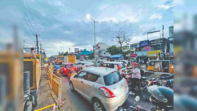 CHENNAI: People face hardships every day because of the traffic on the Tambaram-Velachery Road which is one of the busiest roads in the suburbs. The 16 km stretch has turned into a nightmare for the regular commuters.