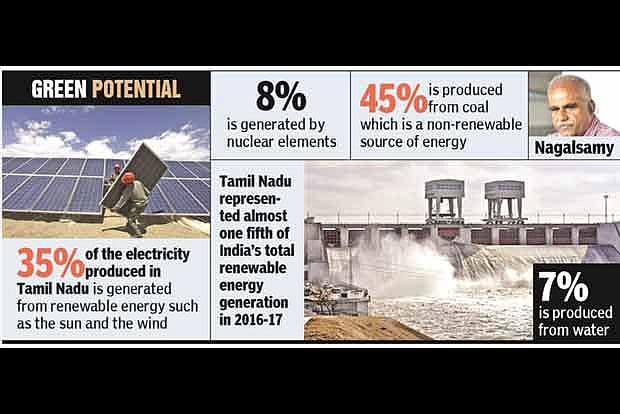 S Nagalsamy, member (Retd), Tamil Nadu Electricity Regulatory Commission, said that for Tamil Nadu, renewable energy is the way forward. “Here, there is good wind speed for five or six months during the south west monsoon, and solar power can be generated for most part of the day. We can easily manage with electricity generated by solar and wind,” he said.