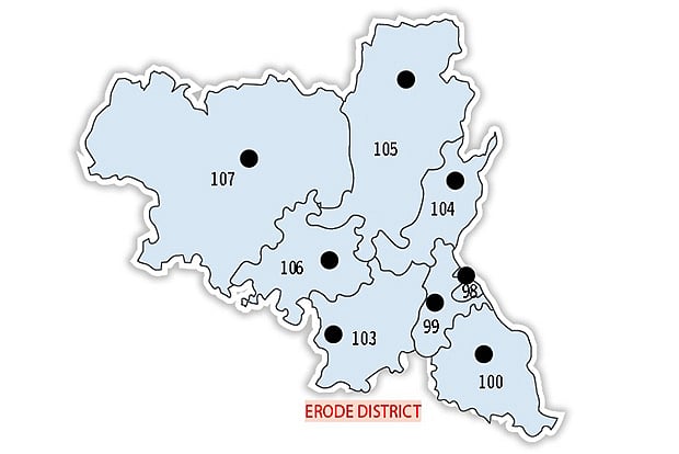 Reorganised in 2008, Erode West constituency covers the western part of Erode corporation. The constituency will experience VVPAT facility in voting machines during the 2016 election. Winning party: AIADMK (2011).