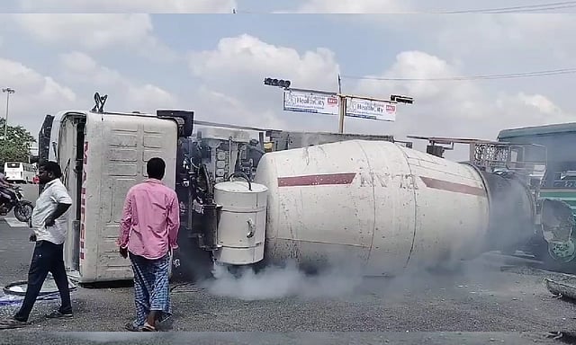 When the lorry driver attempted to make a turn towards Kundrathur Road near Sriperumbudur, he lost control of the vehicle and it turned turtle on the road. Onlookers who rushed to the spot, and rescued the driver who was stuck inside. He was taken to a nearby hospital.