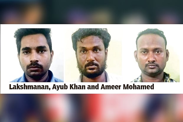 Police said the trio — Lakshmanan (30), Ayub Khan (33) and Ameer Mohamed (35) of Andheri East in Mumbai — had barged into a gold factory which was already sealed by the Revenue and Enforcement department and looted a few important documents and gold pieces on Wednesday.